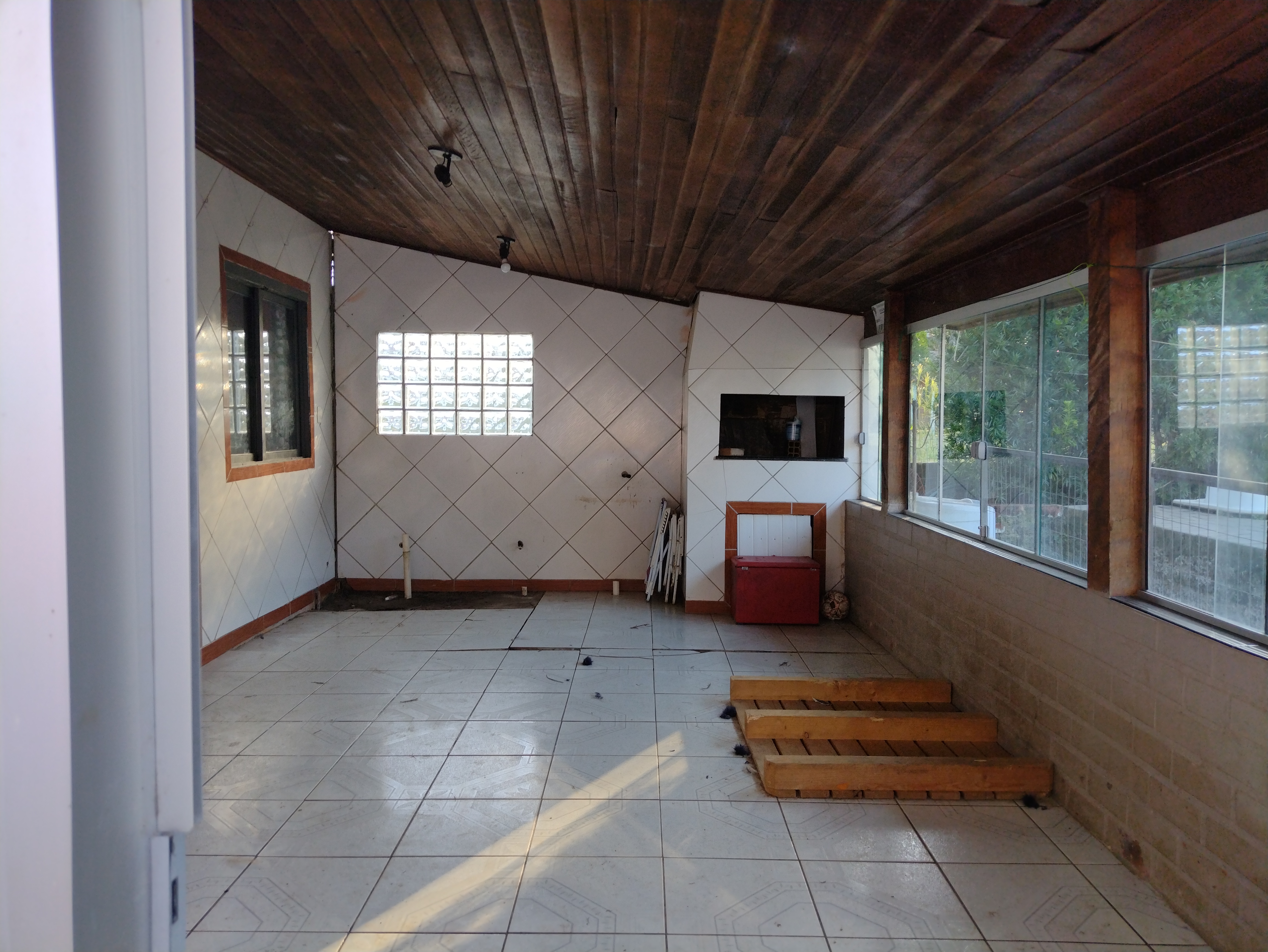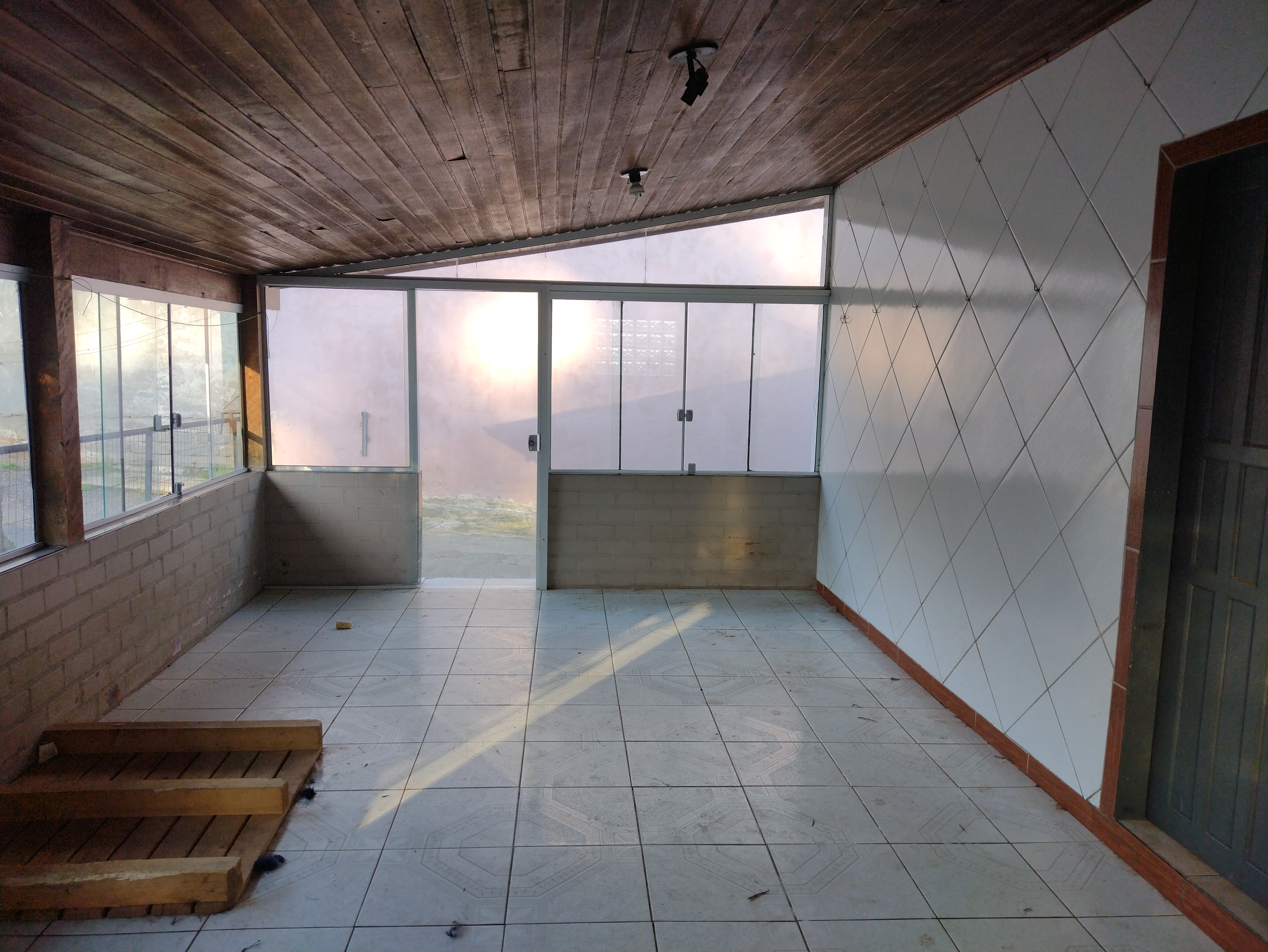 Casa c/02 dorimtórios, sala estar/jantar/cozinha conjugados , área toda envidraçada e c/churrasqueira, espaço externo c/piscina e pátio todo fechado.